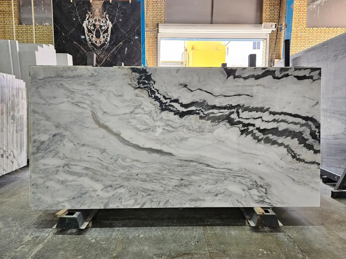 سنگ اسلب چینی پاندا وایت با این شالهای زیبا بصورت بوک مچ فورمچ فرآوری شده است هم برای کف و بدنه در فضای داخلی وهن برای پله های مچ قابل استفاده است . از نظر جنسیت سنگ بسیار متراکم و با جذب آب بسیار پایین است .